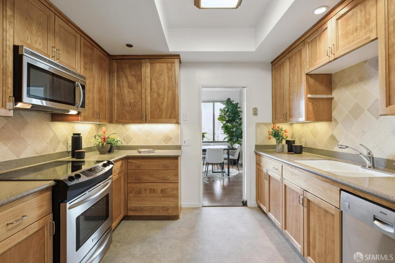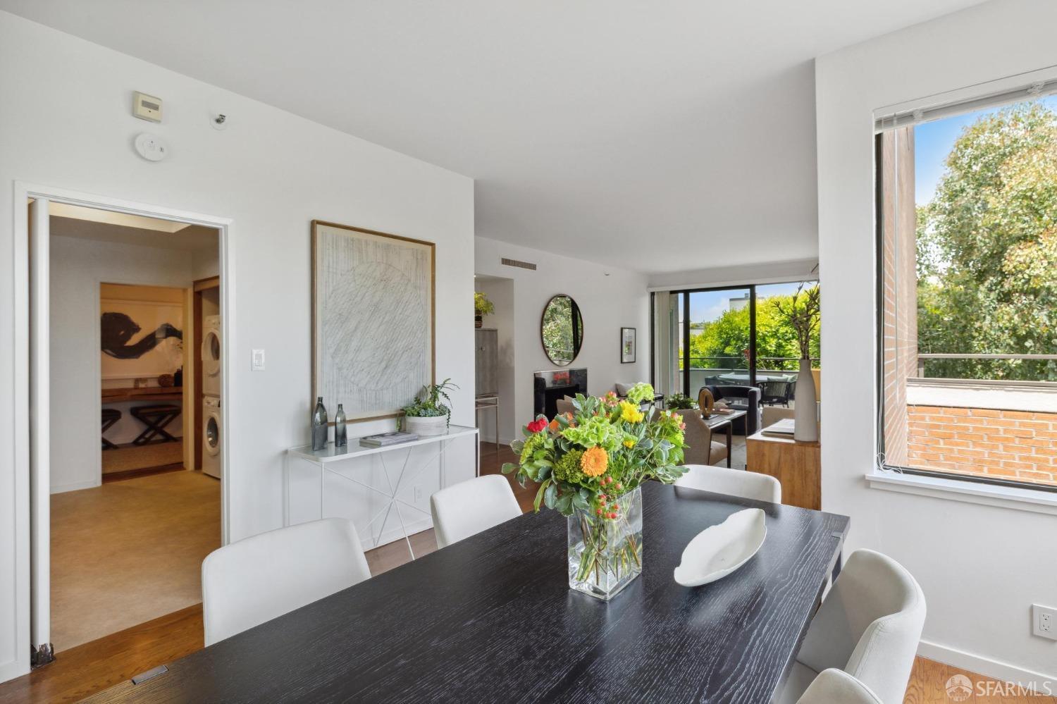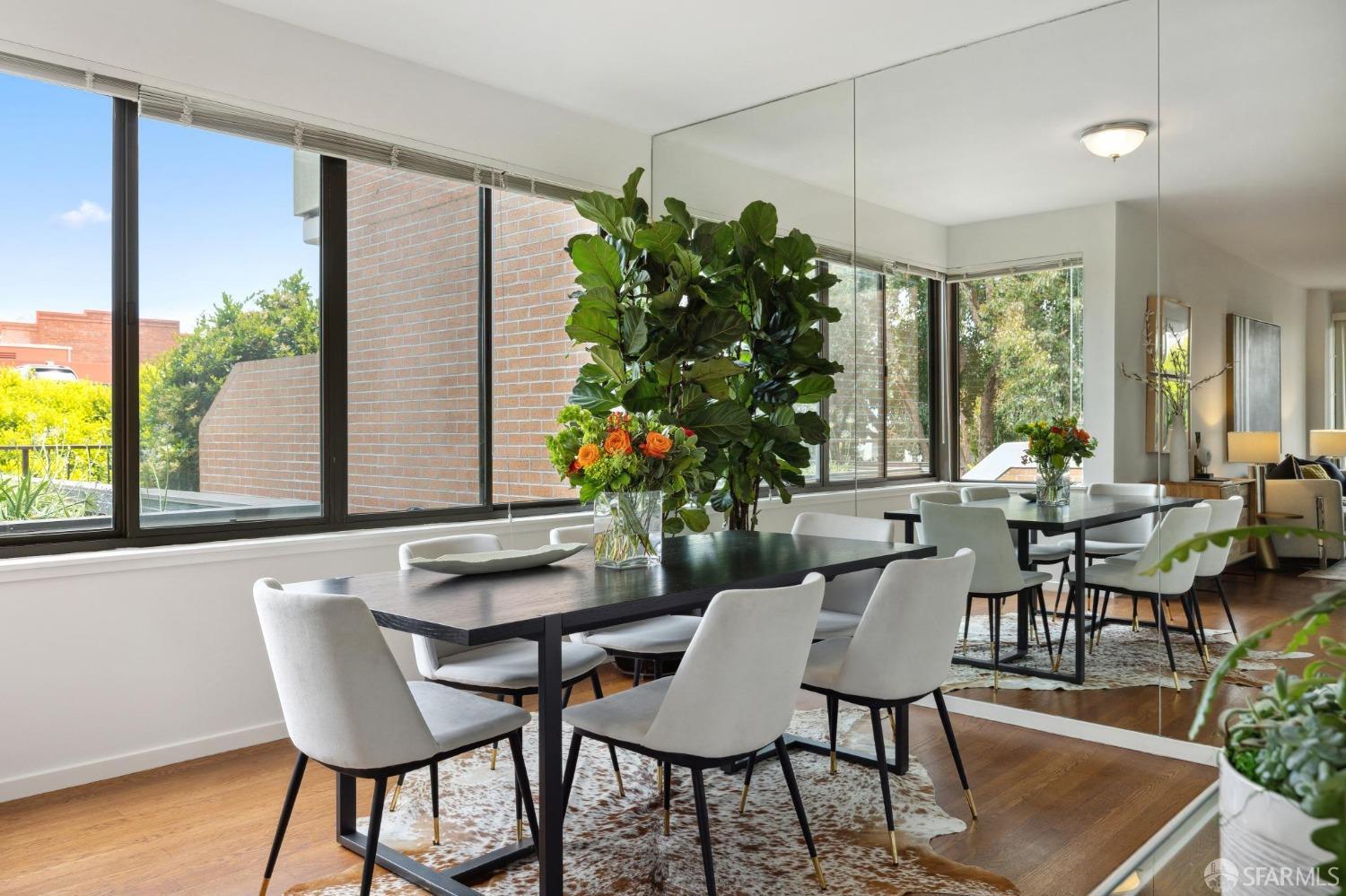 Discover Effortless Elegance at 101 Lombard. This condo is more than just a home; it's a lifestyle choice for those who seek the best in city living while cherishing the luxury of space and privacy. Nestled on a light-filled corner with northeast exposure, this unique property invites you to enjoy serene outlooks of trees, blue skies, and the Bay. Imagine watching cruise ships gracefully come and go from the comfort of your own living space. With high ceilings, wood-burning fireplace, and rich hardwood floors complemented by new carpets the bedrooms,every detail is designed to make you feel right at home. The expansive living room opens onto a large terrace, perfect for relaxing or entertaining and a cozy wood-burning fireplace. Surrounded by the tranquility of award-winning maintained gardens,the large dining room, bathed in natural light from windows on three sides, provides a picturesque setting for memorable meals. The updated kitchen with ample space for culinary adventures and a convenient washer/dryer area. The spacious primary suite features a balcony, dressing area with double sinks. Located on the third floor, coveted pool level,this property offers exclusive access to top-notch amenities. 24/7 security doorman services, heated pool & spa, clubroom, roof decks & more.