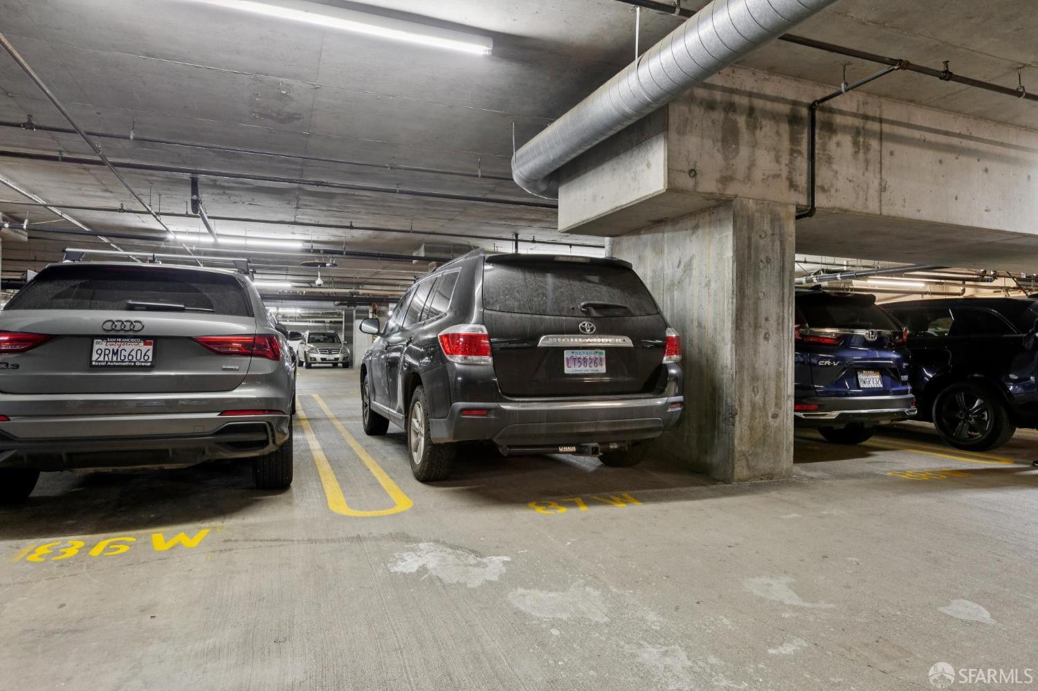 Introducing an exceptional east-facing residence in the highly sought-after 101 Lombard complex. Unit #407W boasts a spacious, light-filled living area with stunning new flooring throughout, wall-to-wall windows, and direct access to a deck. Enjoy partial views of the Bay and the Financial District from your private outdoor space. Pool facing. The well-designed kitchen adjacent to the dining area features modern countertops and new stainless steel appliances to meet your cooking needs. The expansive primary bedroom suite offers not only a balcony but also two closets, including a dedicated walk-in closet, along with an en-suite bathroom for added privacy and convenience. The guest bedroom impresses with its generous size, abundant natural light, a step-out window to the deck, and a large walk-in closet. A conveniently located full bathroom is available to the guest room, ensuring comfort for visitors. Additional highlights include laundry hookups in the kitchen closet, a deeded one-car garage parking space conveniently located near the elevator, and extra storage on the same floor for all your needs. The community amenities are outstanding, featuring a secure bike room, an EV charging station, a swimming pool and spa, 24-hour security doorman service, a common area with a rooftop deck, and a dedicated car-washing area. Don't miss the opportunity to make this premier residence your new home!