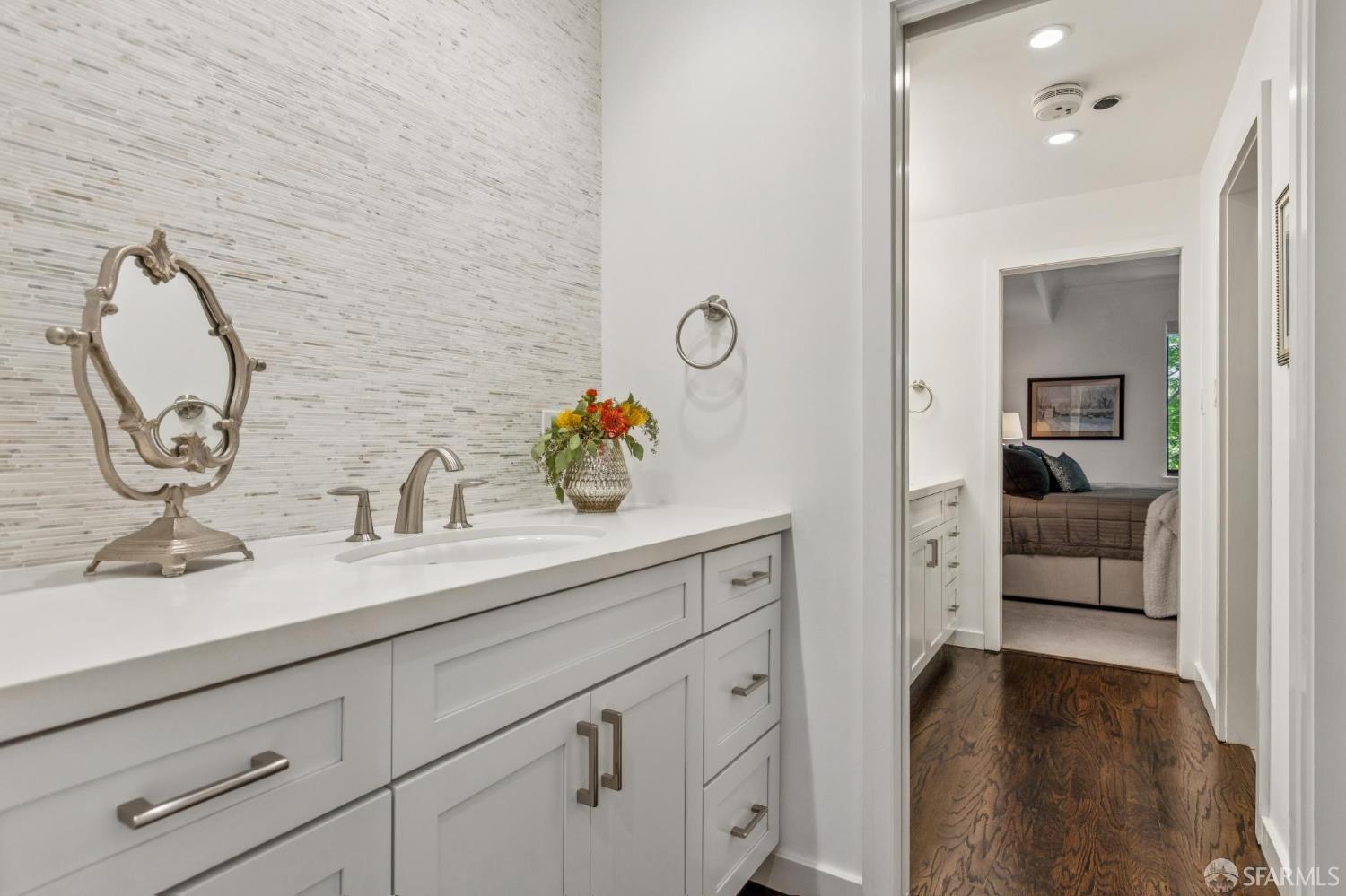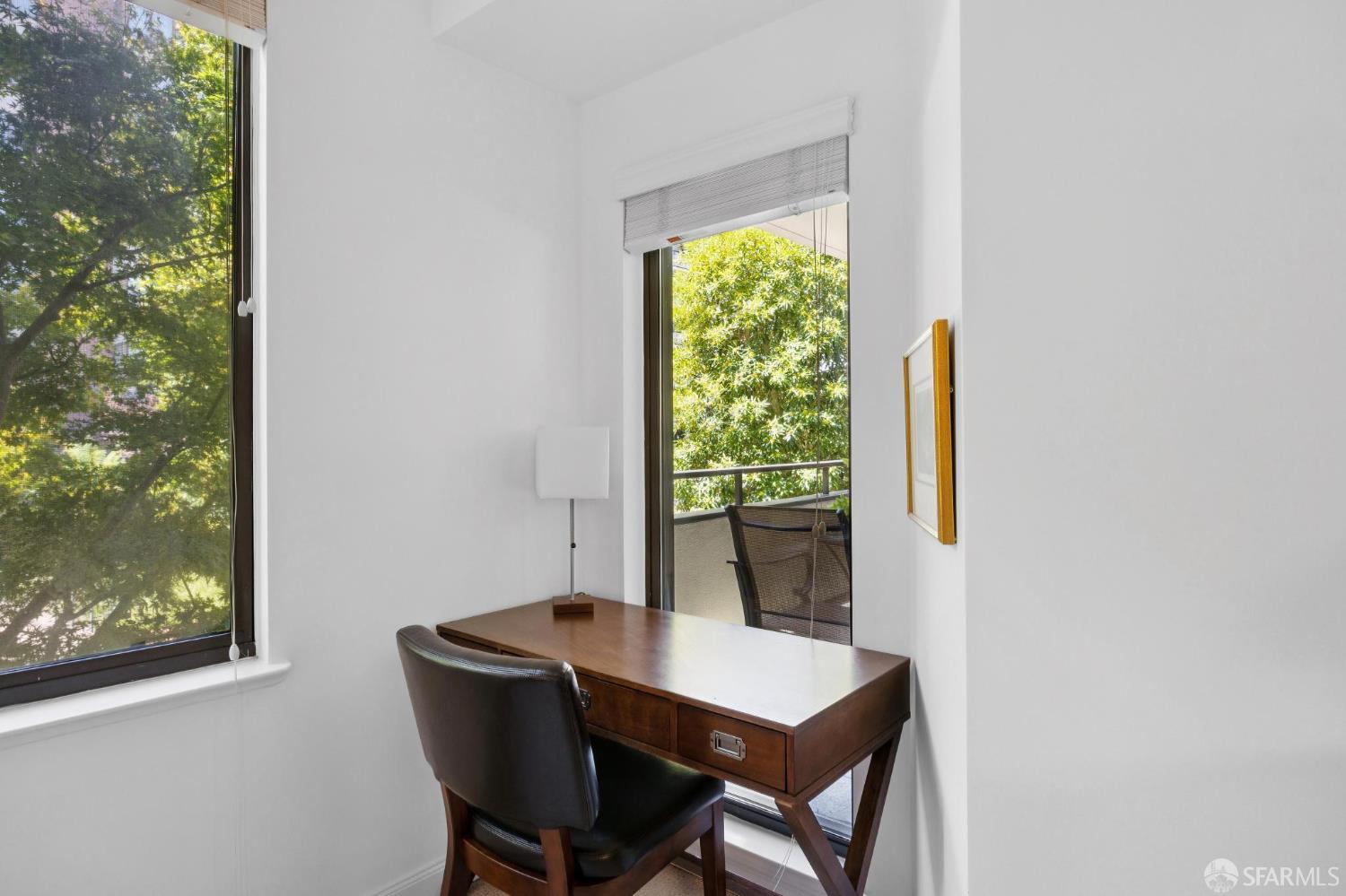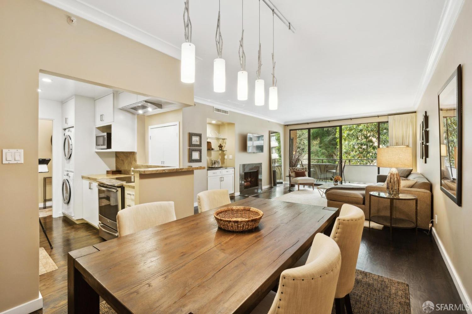 Stunningly remodeled residence designed for those who seek luxury, privacy, and convenience in a unique urban setting. This sophisticated pool-facing property features a large open living space. Enjoy the expansive deck, beautiful views of Coit Tower, a wood-burning fireplace in the living room, high ceilings, and gorgeous hardwood floors. The modern kitchen has been opened to the living area and includes excellent storage along with a washer/dryer closet. The split bathroom features a separate double sink and vanity area. The spacious bedroom suite overlooks beautiful trees, gardens, and Coit Tower, and it includes a huge walk-in closet. An additional storage area is conveniently located just outside the front door. Amenities include a 24-hour doorman, pool, spa, landscaped gardens, conference room, clubroom, electric car charging station, bike storage, common area roof decks, and a car wash area. The sought-after North Waterfront is nestled in a sunbelt below Telegraph Hill near the bay.