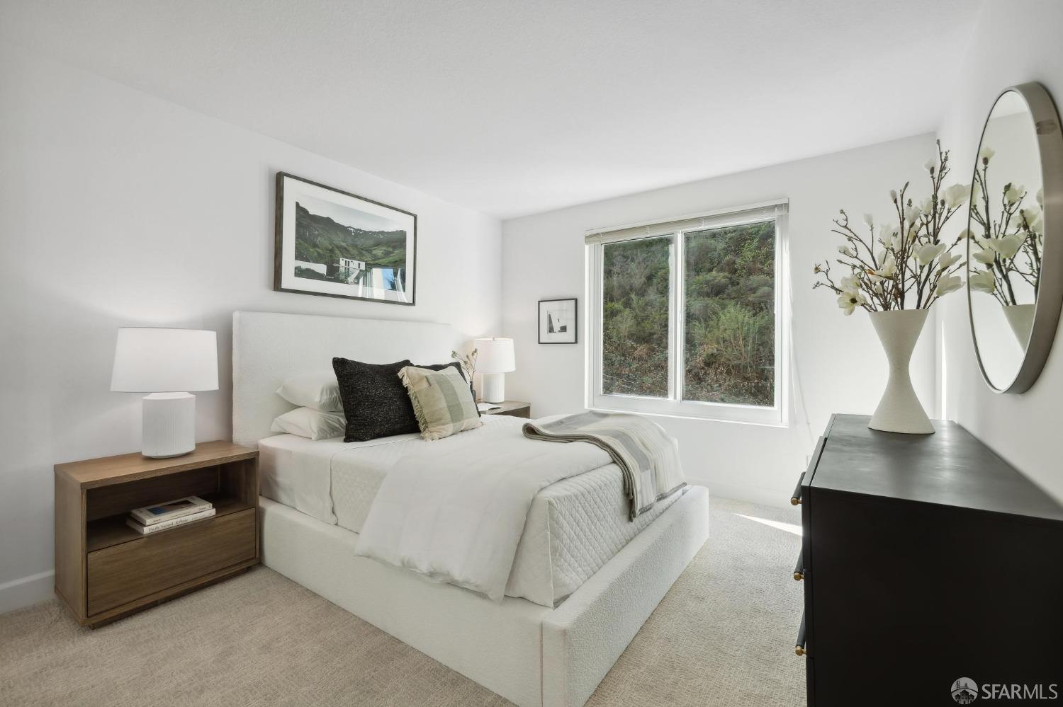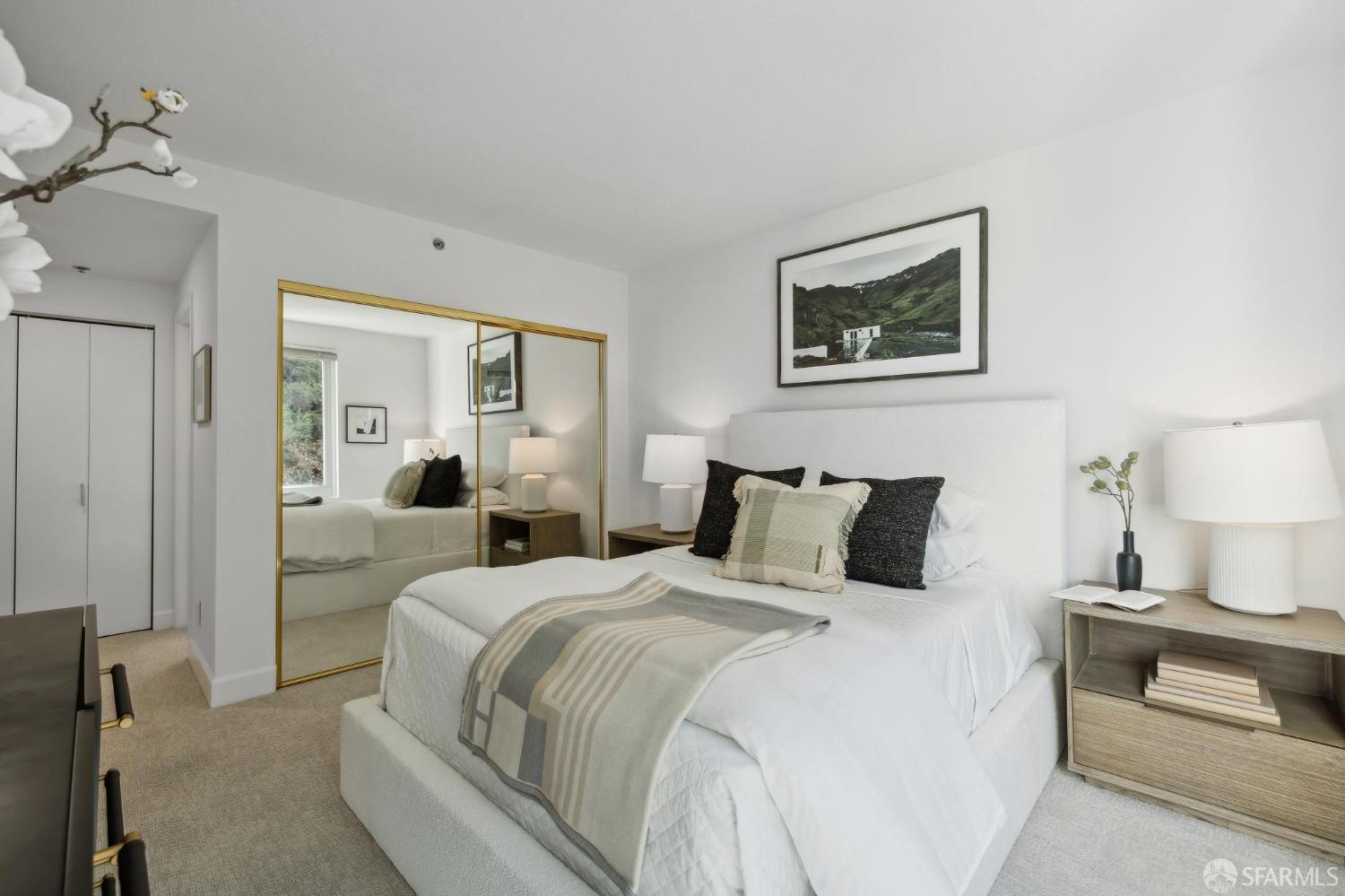Stunning residence in this meticulously cared-for property. A quiet oasis in the middle of the city. Beautiful outlooks to the ever-changing vegetation of Telegraph Hill and peak of Alcatraz. This very private, well-designed floor plan has two bedroom suites divided by the open living room and dining room areas. Beautiful hardwood floors and built-ins in the living areas. Washer & dryer in the hallway closet. Direct elevator access to garage parking. Look no more for the perfect city residence. Ideally located in the vibrant North Waterfront at Parc Telegraph. Walking score 95. Walk to San Francisco Bay Club, Pier 39, Exploratorium, cruise ship terminal, Levi Plaza with parks and fountains, Starbucks, RJ's market, ferry building, and many favorite restaurants. Come home to Parc Telegraph. Simplify your life in this beautiful complex and an outstanding neighborhood. Guest suite, club room, gym, 24-hour security, gardens, and fountains. On a cul-de-sac.