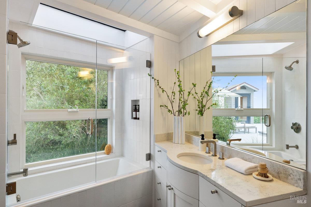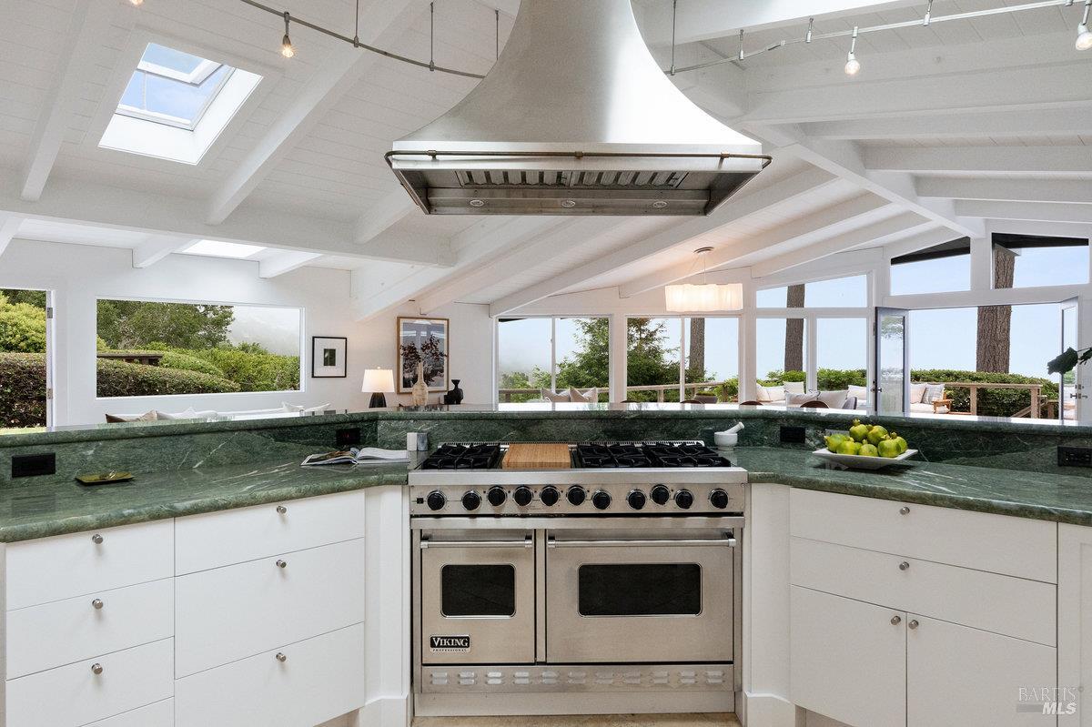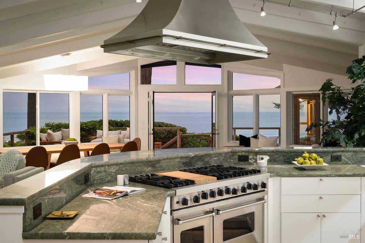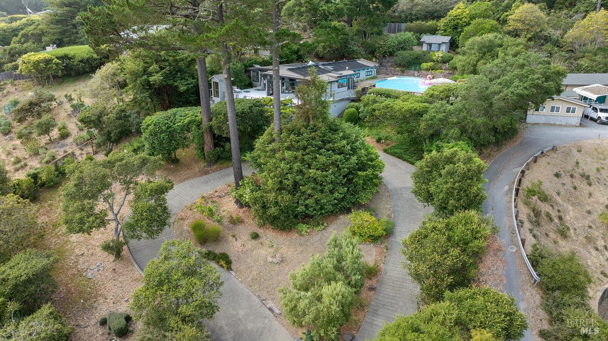 Wake to Ocean Whispers, Sleep Under Starlit Skies. Imagine morning coffee on sun-warmed redwood decks as Pacific waves shimmer beyond walls of glass. This Highlands sanctuary above Stinson Beach transforms everyday moments into pure magic. Sessions in the sauna that melt stress away, poolside dinners where laughter echoes under towering pines, and stargazing from rejuvenating hot tubs. The detached cabin offers endless possibilities: an art studio, office sanctuary, or creative retreat, while you effortlessly host in the gourmet kitchen's Viking range embrace. Three bedrooms become personal havens, each with ocean or mountain views that shift like living paintings throughout the day. Just a 10-minute walk to the beach for sand between your toes, yet completely private behind gates where fruit trees perfume the air and redwoods whisper ancient secrets. The elevator-accessible in-law suite means multi-generational memories, while renovated decks stretch your living space into nature's cathedral. This isn't just a home, it's where your soul exhales, where every sunset becomes a celebration, and where the rhythm of waves becomes your daily soundtrack.