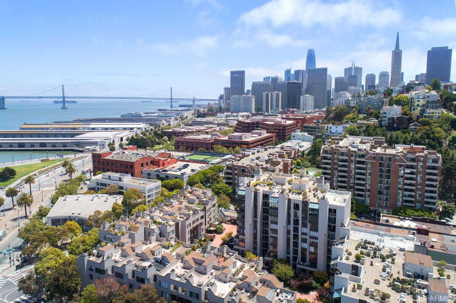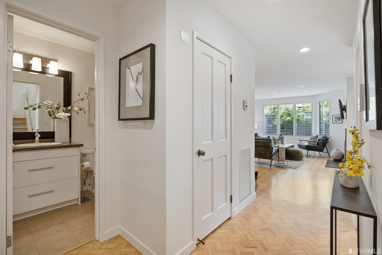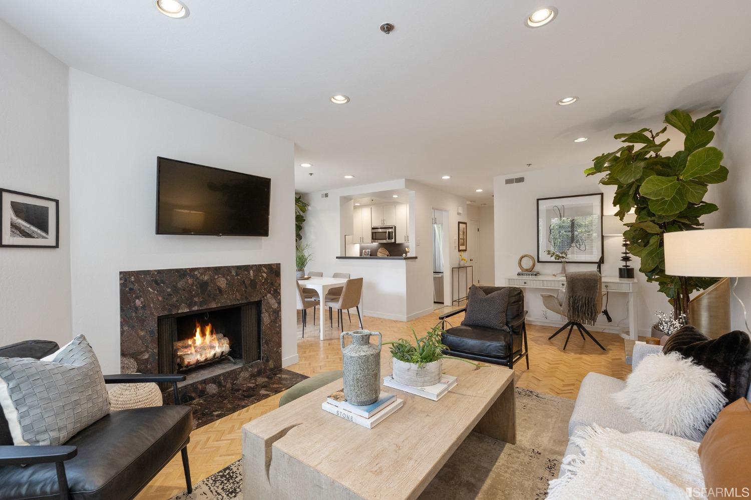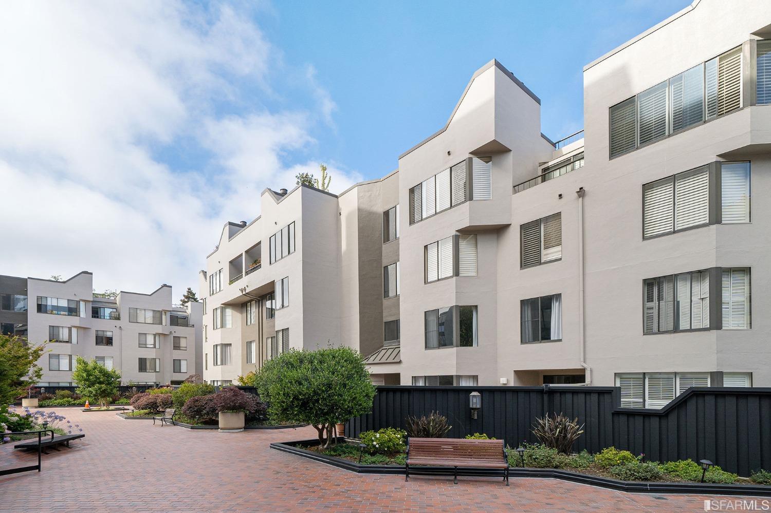 Make this stunning, remodeled residence your own San Francisco retreat. A private 2-level two bedroom, 2.5-bath townhouse with a garden patio facing the courtyard. Beautiful herringbone hardwood floors throughout. The first floor consists of the living room with wall-to-wall windows, a cozy wood-burning fireplace, and a gracious dining room opening to the large patio-perfect for dining al fresco & the urban gardener. A powder room with a laundry closet completes this level. Upstairs is the large primary suite with double closets, a bathroom with shower & tub, a second bedroom, a hall bath, and oversized storage closets. There is a second entrance on this floor. There is one car garage parking & additional storage. Telegraph Landing has a lovely staff, including a 24-hour security doorman/guard, an excellent on-site manager, and an assistant. Amenities include a gym, club room, and two common area roof decks with Bay and Golden Gate Bridge views & communal gardens. Enjoy this outstanding location. Walk to The Embarcadero, Ferry Building, Bay Club, the Battery, the acclaimed Farmers Market, Exploratorium, Levi Plaza, Bay Club & many outstanding neighborhood restaurants. One of San Francisco's most sought-after neighborhoods.