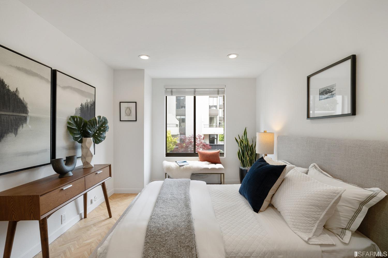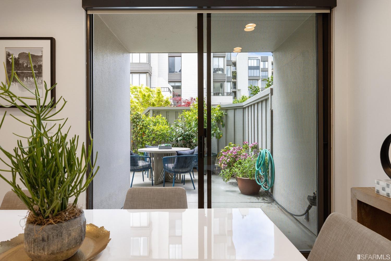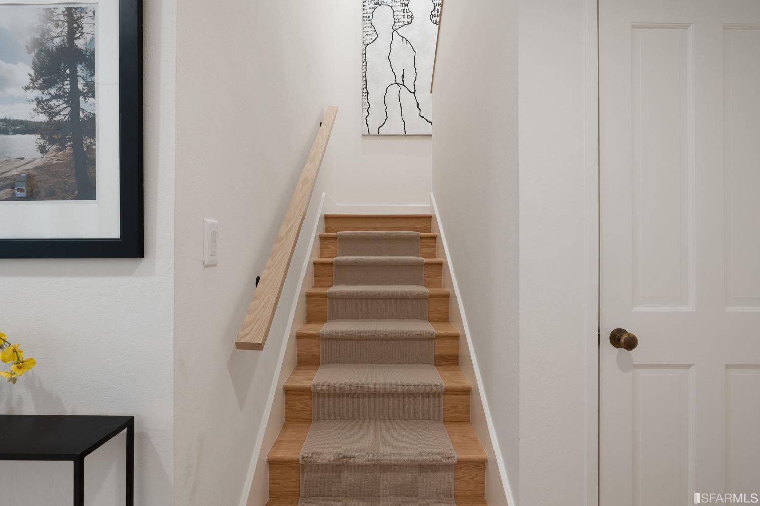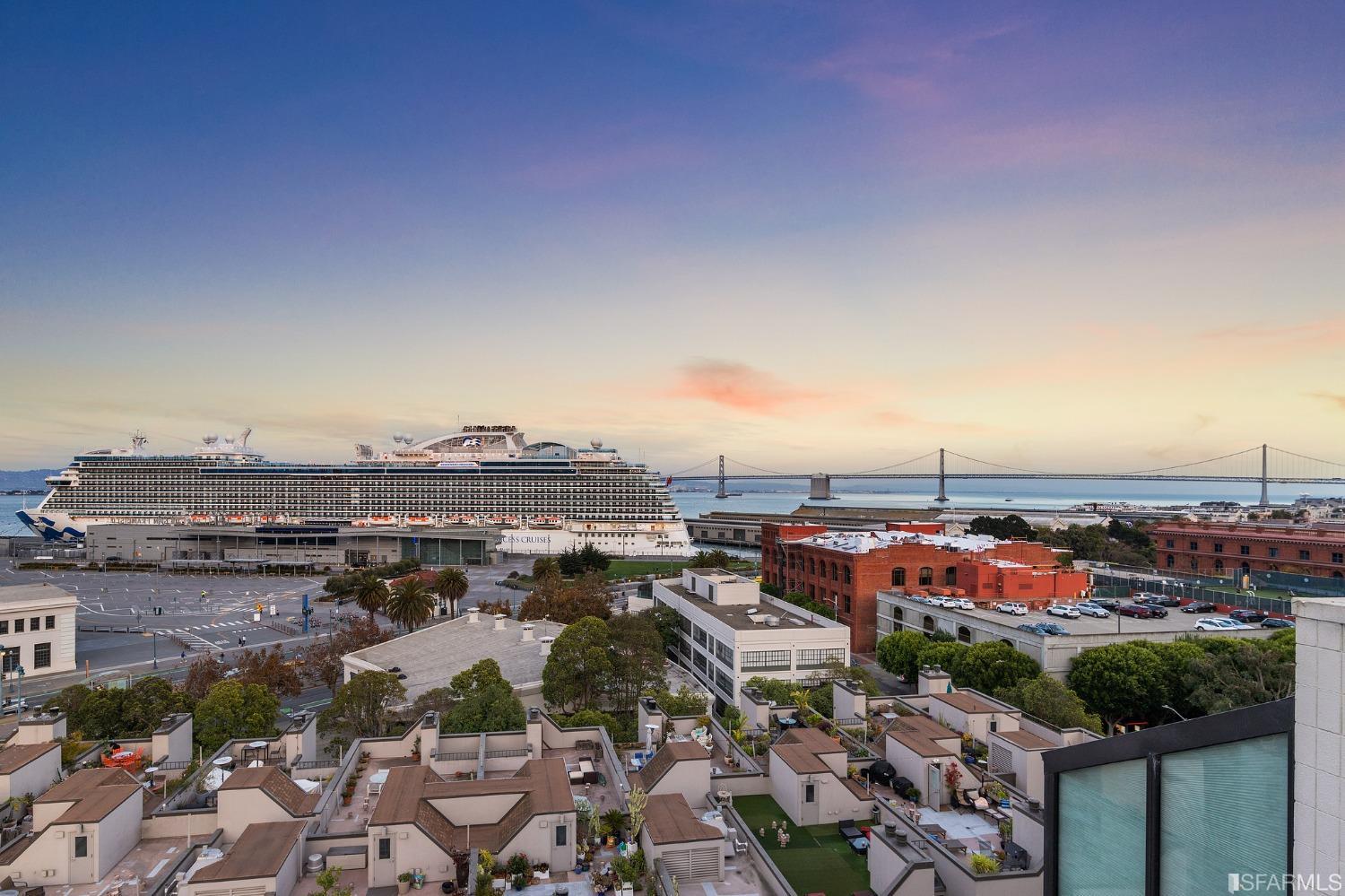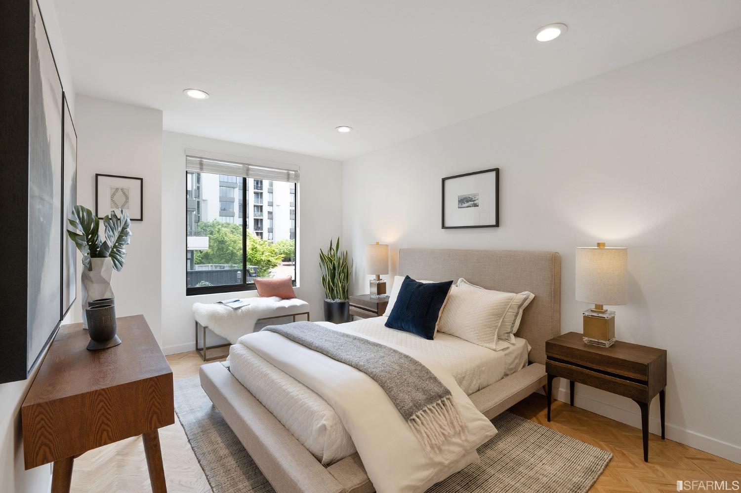 Make this stunning, remodeled residence your own San Francisco retreat. A private 2-level two bedroom, 2.5-bath townhouse with a garden patio facing the courtyard. Beautiful herringbone hardwood floors throughout. The first floor consists of the living room with wall-to-wall windows, a cozy wood-burning fireplace, and a gracious dining room opening to the large patio-perfect for dining al fresco & the urban gardener. A powder room with a laundry closet completes this level. Upstairs is the large primary suite with double closets, a bathroom with shower & tub, a second bedroom, a hall bath, and oversized storage closets. There is a second entrance on this floor. There is one car garage parking & additional storage. Telegraph Landing has a lovely staff, including a 24-hour security doorman/guard, an excellent on-site manager, and an assistant. Amenities include a gym, club room, and two common area roof decks with Bay and Golden Gate Bridge views & communal gardens. Enjoy this outstanding location. Walk to The Embarcadero, Ferry Building, Bay Club, the Battery, the acclaimed Farmers Market, Exploratorium, Levi Plaza, Bay Club & many outstanding neighborhood restaurants. One of San Francisco's most sought-after neighborhoods.