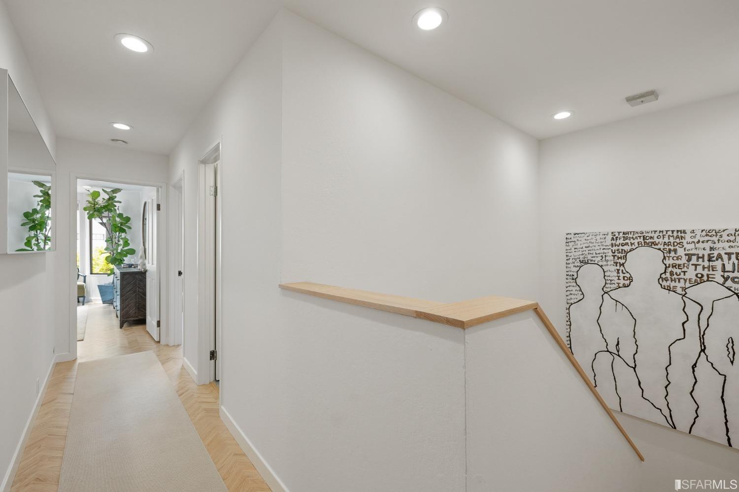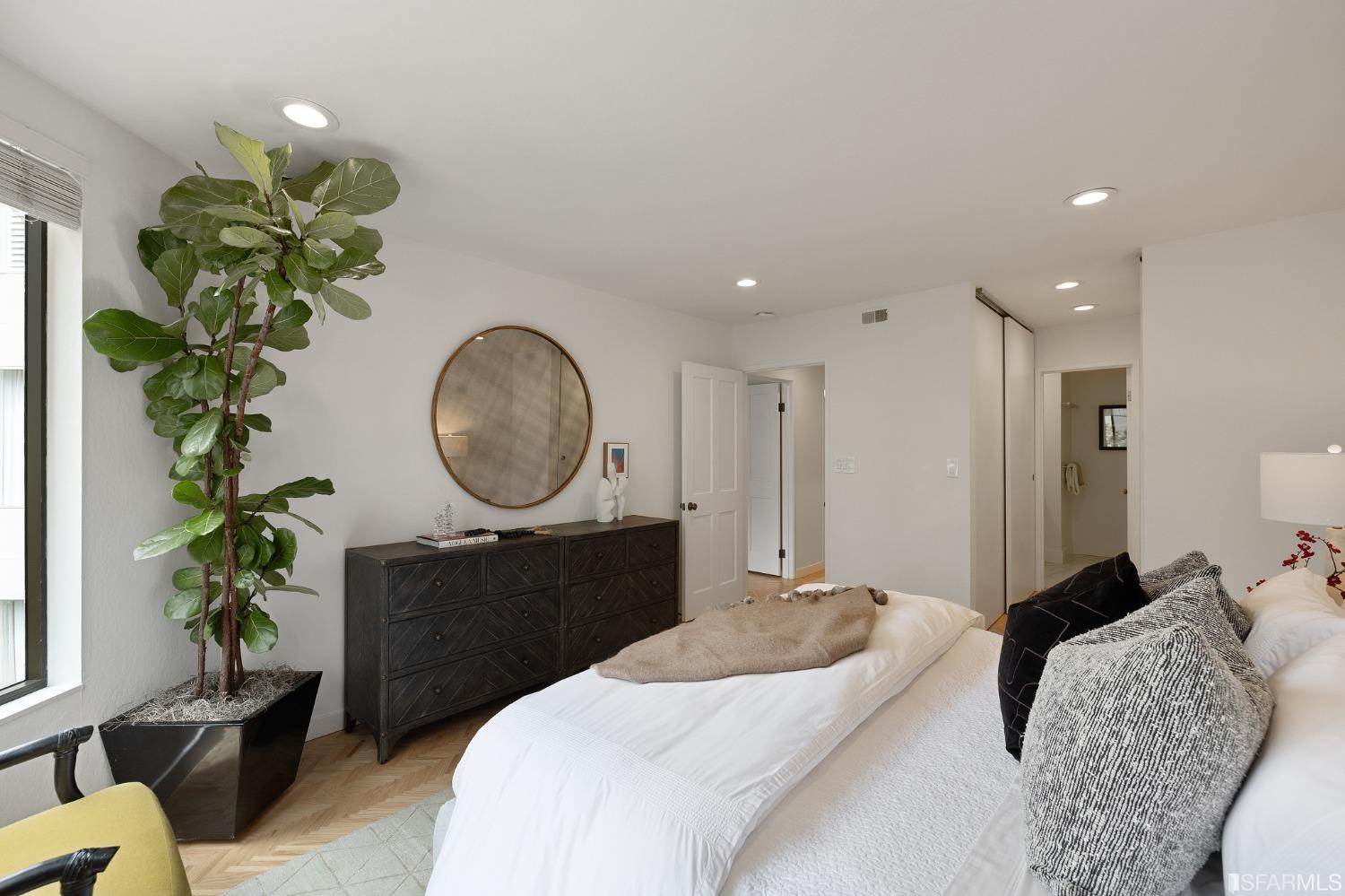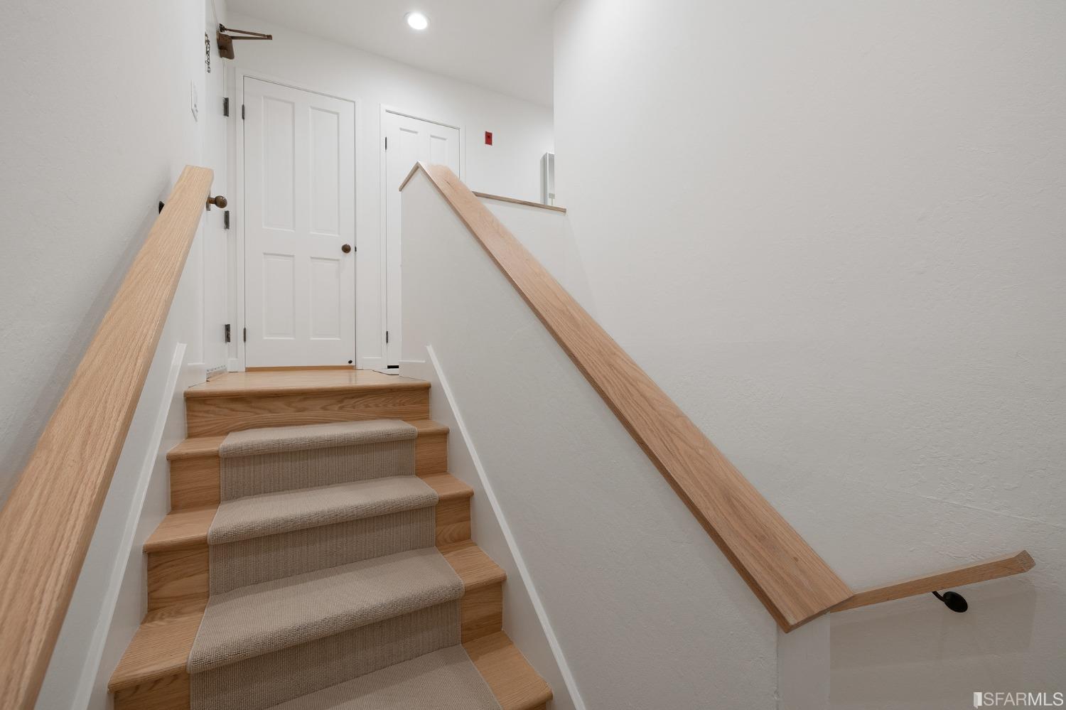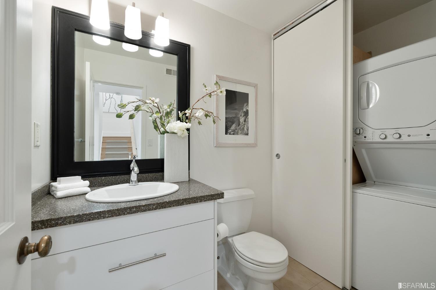 Make this stunning, remodeled residence your own San Francisco retreat. A private 2-level two bedroom, 2.5-bath townhouse with a garden patio facing the courtyard. Beautiful herringbone hardwood floors throughout. The first floor consists of the living room with wall-to-wall windows, a cozy wood-burning fireplace, and a gracious dining room opening to the large patio-perfect for dining al fresco & the urban gardener. A powder room with a laundry closet completes this level. Upstairs is the large primary suite with double closets, a bathroom with shower & tub, a second bedroom, a hall bath, and oversized storage closets. There is a second entrance on this floor. There is one car garage parking & additional storage. Telegraph Landing has a lovely staff, including a 24-hour security doorman/guard, an excellent on-site manager, and an assistant. Amenities include a gym, club room, and two common area roof decks with Bay and Golden Gate Bridge views & communal gardens. Enjoy this outstanding location. Walk to The Embarcadero, Ferry Building, Bay Club, the Battery, the acclaimed Farmers Market, Exploratorium, Levi Plaza, Bay Club & many outstanding neighborhood restaurants. One of San Francisco's most sought-after neighborhoods.