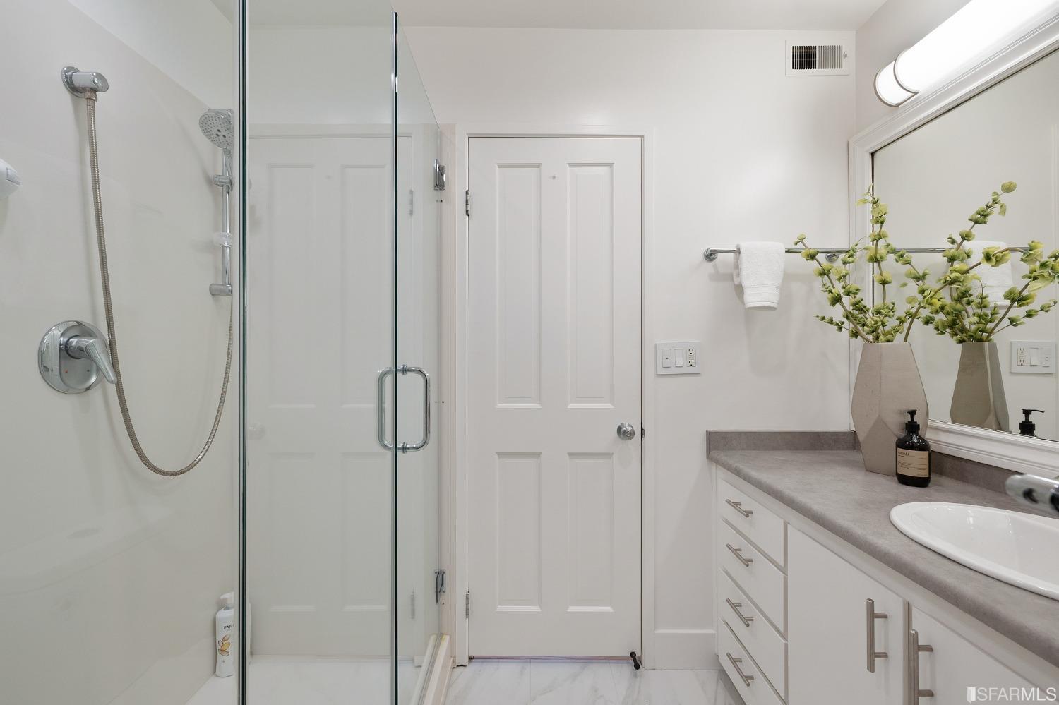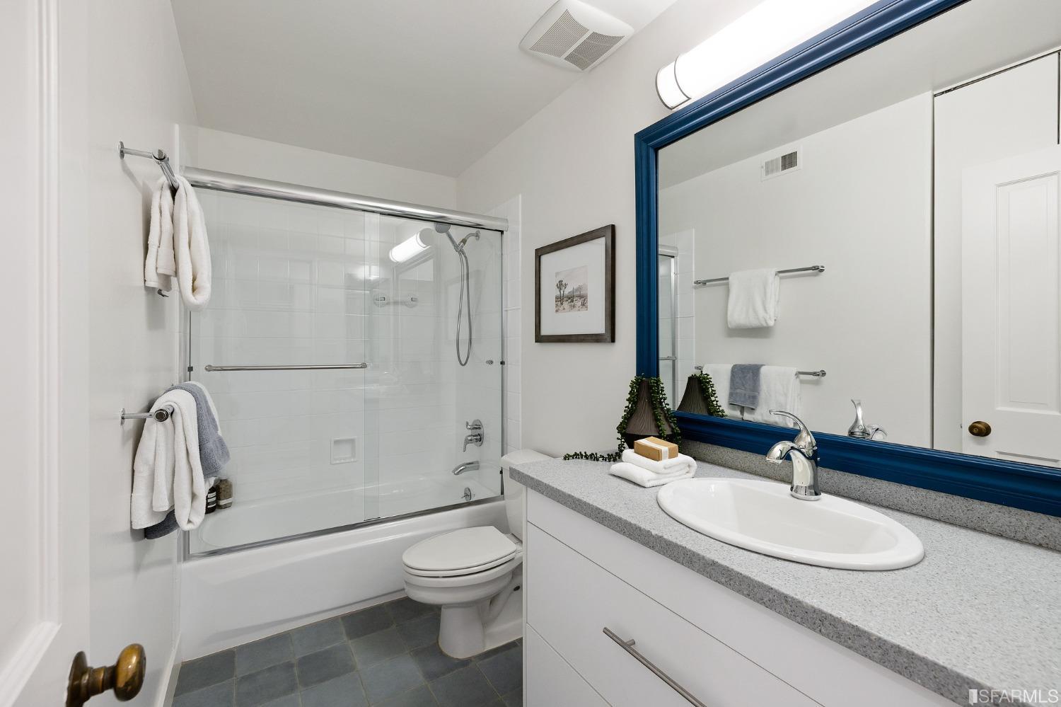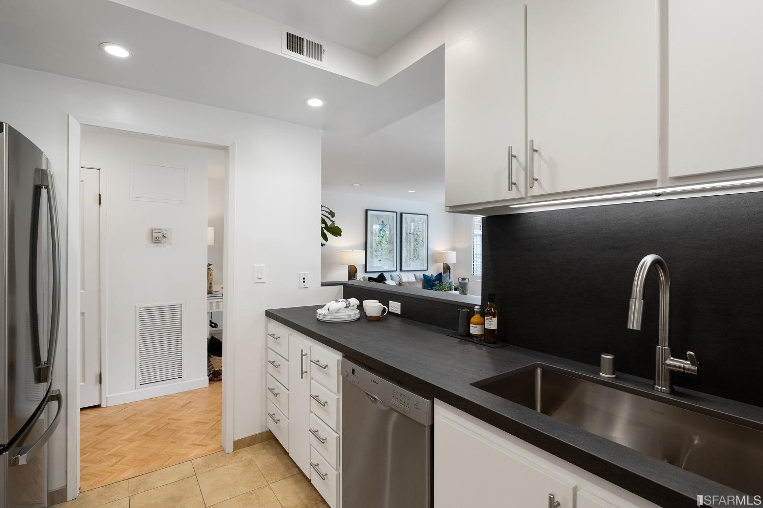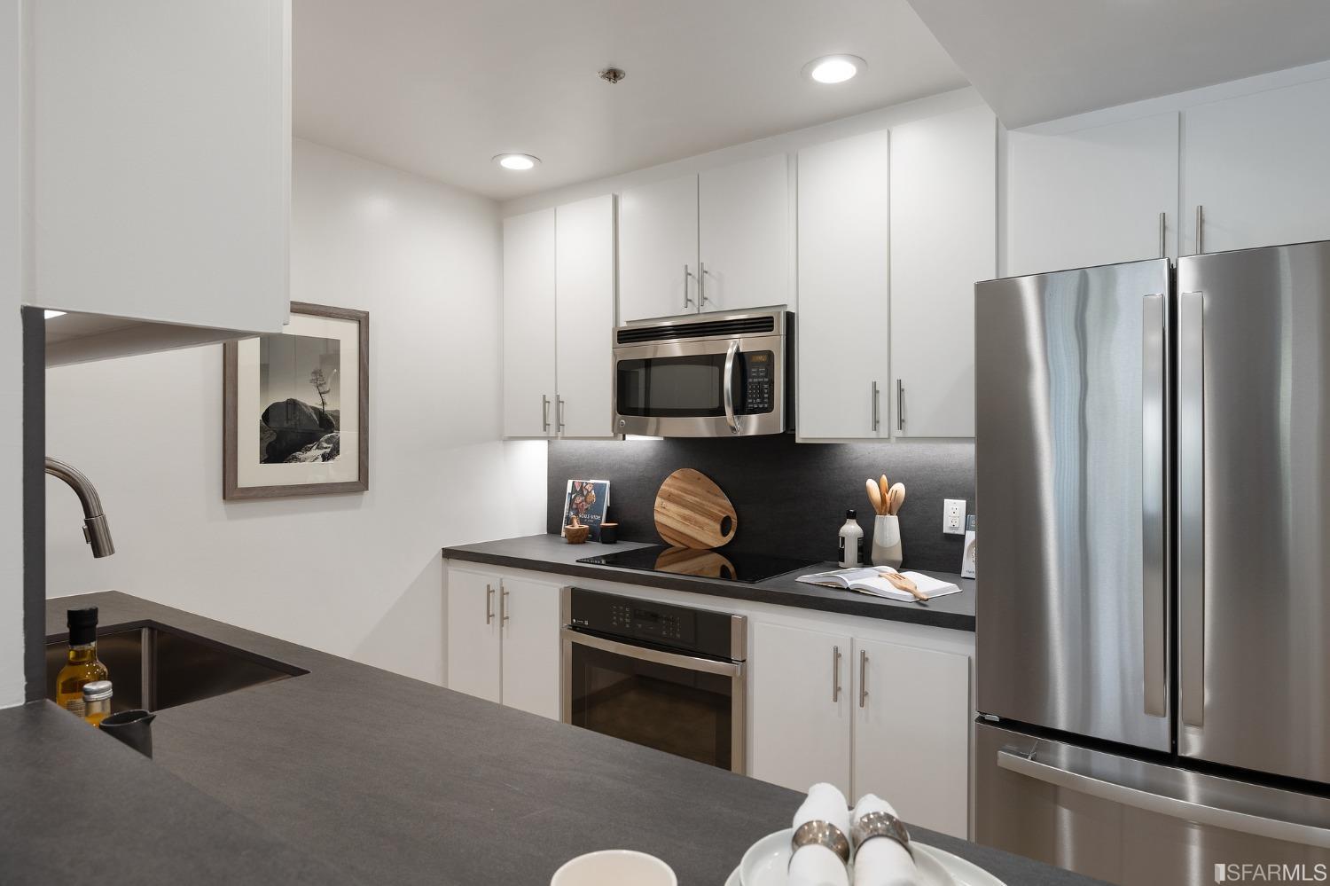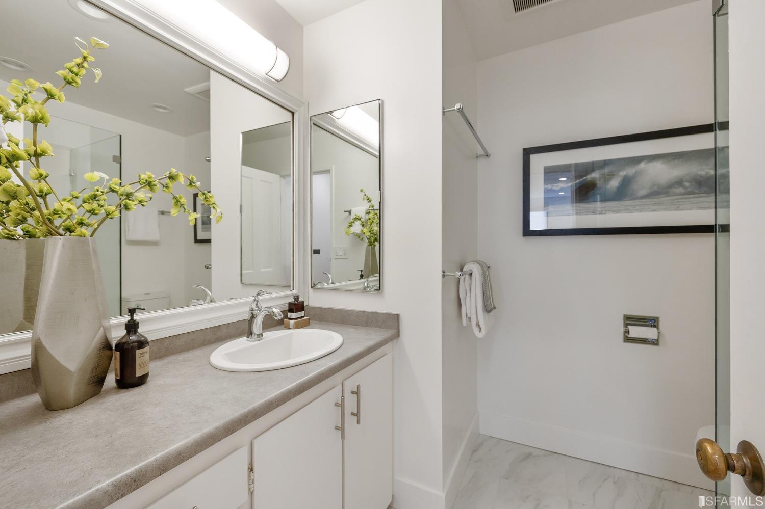 Make this stunning, remodeled residence your own San Francisco retreat. A private 2-level two bedroom, 2.5-bath townhouse with a garden patio facing the courtyard. Beautiful herringbone hardwood floors throughout. The first floor consists of the living room with wall-to-wall windows, a cozy wood-burning fireplace, and a gracious dining room opening to the large patio-perfect for dining al fresco & the urban gardener. A powder room with a laundry closet completes this level. Upstairs is the large primary suite with double closets, a bathroom with shower & tub, a second bedroom, a hall bath, and oversized storage closets. There is a second entrance on this floor. There is one car garage parking & additional storage. Telegraph Landing has a lovely staff, including a 24-hour security doorman/guard, an excellent on-site manager, and an assistant. Amenities include a gym, club room, and two common area roof decks with Bay and Golden Gate Bridge views & communal gardens. Enjoy this outstanding location. Walk to The Embarcadero, Ferry Building, Bay Club, the Battery, the acclaimed Farmers Market, Exploratorium, Levi Plaza, Bay Club & many outstanding neighborhood restaurants. One of San Francisco's most sought-after neighborhoods.