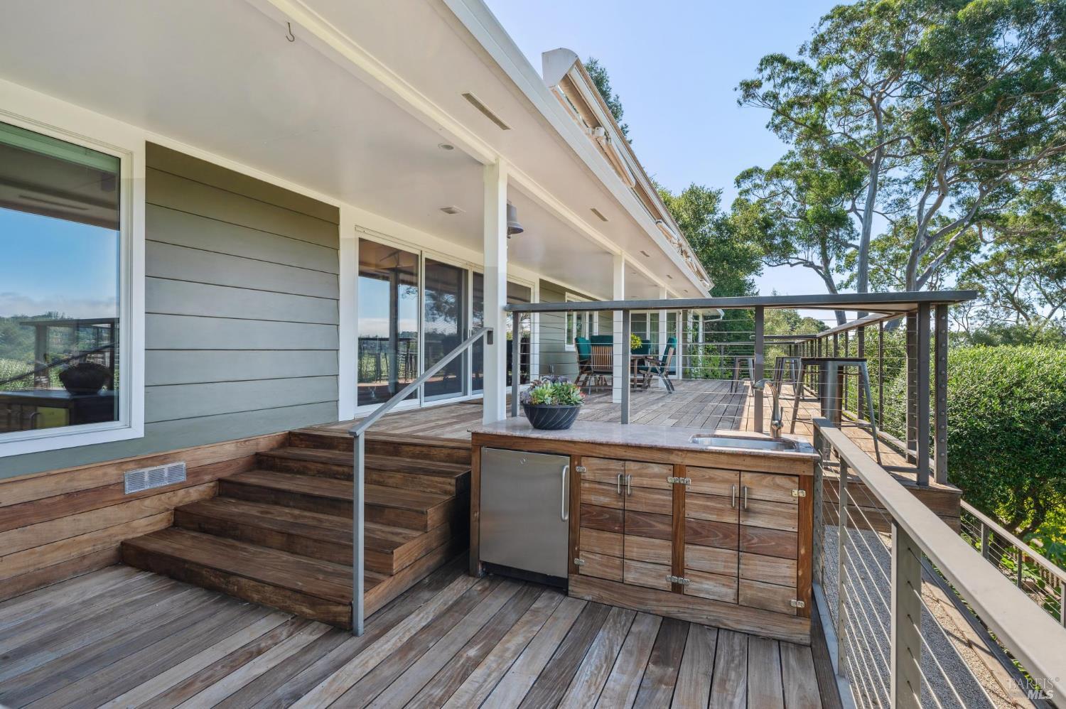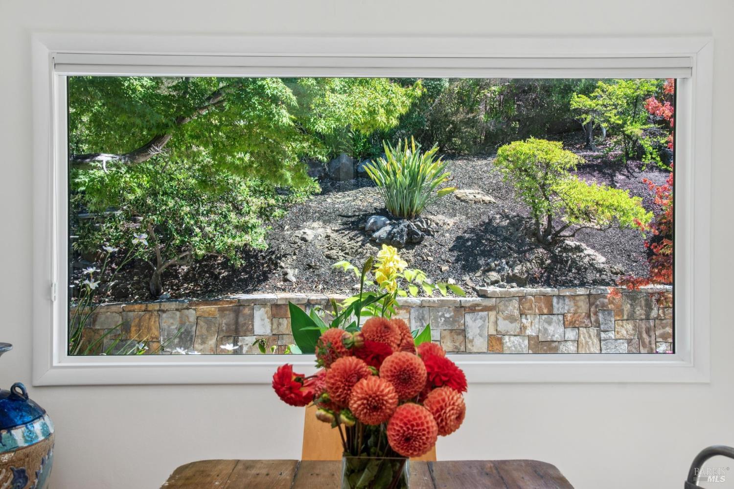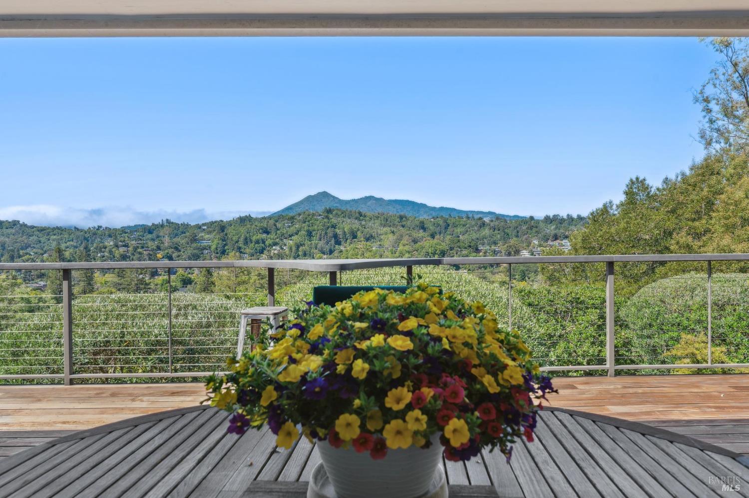 Beautiful single-level home nestled in the highly coveted Fairhills neighborhood. Breathtaking views of Mount Tamalpais and filled with natural light. Enter a flagstone patio into a warm entryway and living room, with granite-faced fireplace and library/display. Sliding glass doors open to expansive decks, inspiring outdoor living and gatherings. The adjoining dining area boasts a handsome built-in cabinet. The remodeled kitchen, overlooking the dining space features laundry room with garage access and a half bath. A sun-drenched breakfast room, with a pocket invites you to enjoy leisurely mornings, while a sliding door leads to the welcoming front patio. Three inviting bedrooms and two elegantly updated bathrooms. The spacious primary bedroom offers a magnificent view of Mount Tam through a large plate-glass window and provides direct access to the deck. The primary bathroom has shower and a tub. Expansive deck & outdoor kitchen equipped with a wet bar and barbecue space, perfect for entertaining. Terraced gardens adorned with fruit trees and seating areas. Two-car garage, add'l storage. Embrace the rare blend of comfort, privacy, and natural beauty in one of San Rafael's most desirable locations. Easy walkability to downtown shopping,restaurants,and great schools.