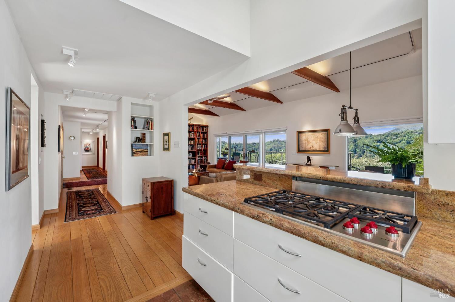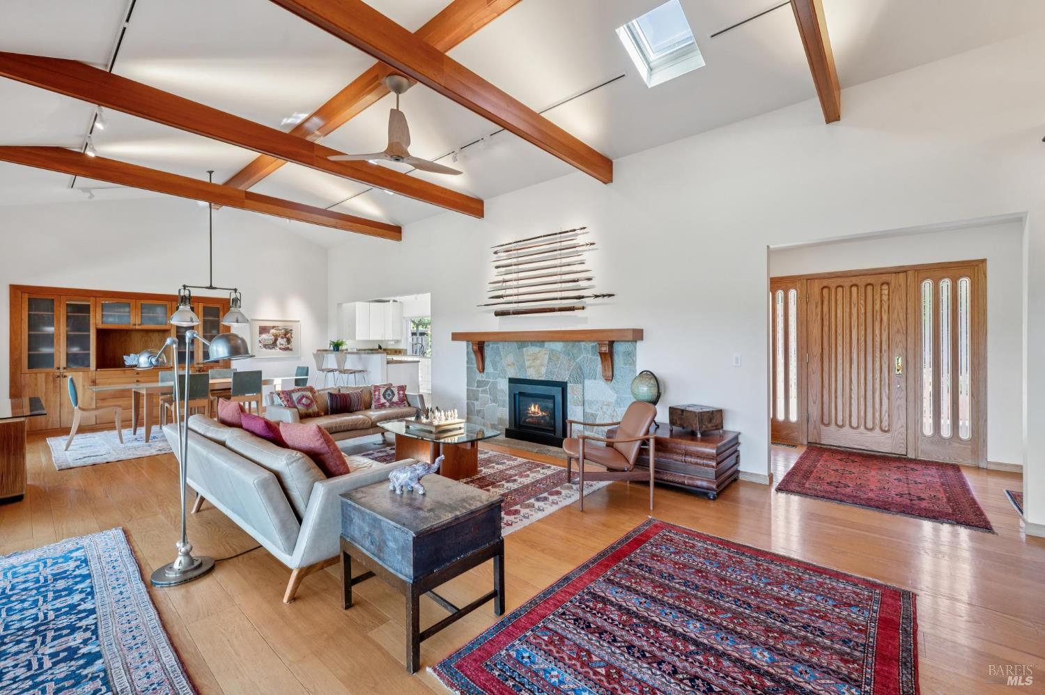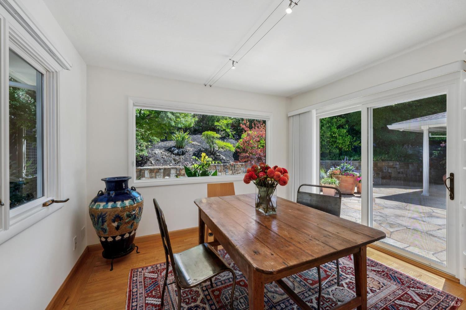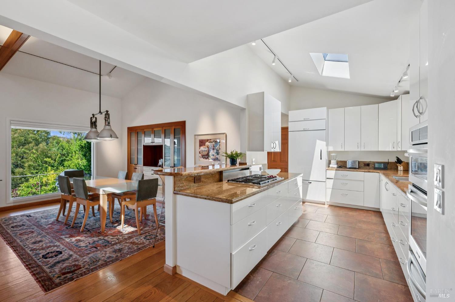 Beautiful single-level home nestled in the highly coveted Fairhills neighborhood. Breathtaking views of Mount Tamalpais and filled with natural light. Enter a flagstone patio into a warm entryway and living room, with granite-faced fireplace and library/display. Sliding glass doors open to expansive decks, inspiring outdoor living and gatherings. The adjoining dining area boasts a handsome built-in cabinet. The remodeled kitchen, overlooking the dining space features laundry room with garage access and a half bath. A sun-drenched breakfast room, with a pocket invites you to enjoy leisurely mornings, while a sliding door leads to the welcoming front patio. Three inviting bedrooms and two elegantly updated bathrooms. The spacious primary bedroom offers a magnificent view of Mount Tam through a large plate-glass window and provides direct access to the deck. The primary bathroom has shower and a tub. Expansive deck & outdoor kitchen equipped with a wet bar and barbecue space, perfect for entertaining. Terraced gardens adorned with fruit trees and seating areas. Two-car garage, add'l storage. Embrace the rare blend of comfort, privacy, and natural beauty in one of San Rafael's most desirable locations. Easy walkability to downtown shopping,restaurants,and great schools.